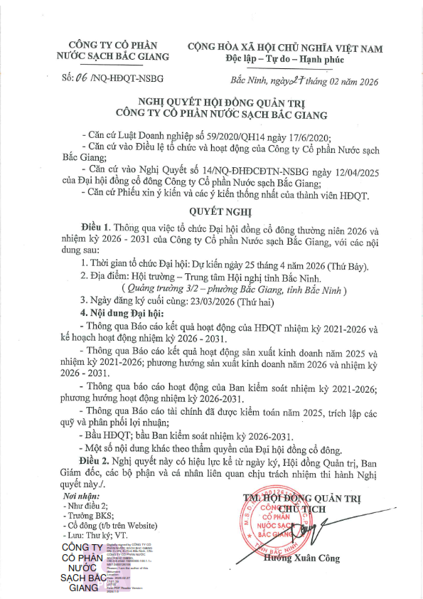 Thông báo về ngày đăng ký cuối cùng thực hiện quyền tham dự ĐHĐCĐTN 2026